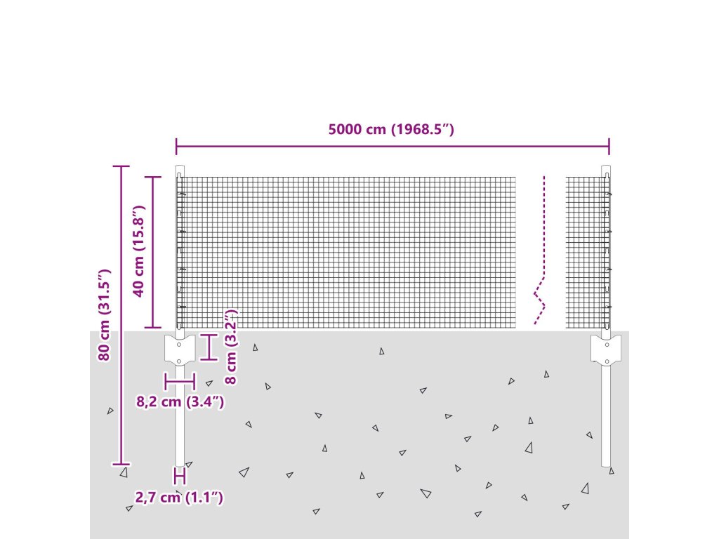 - Celkové rozměry: 5000 x 2,7 x 40 cm (D x Š x V)