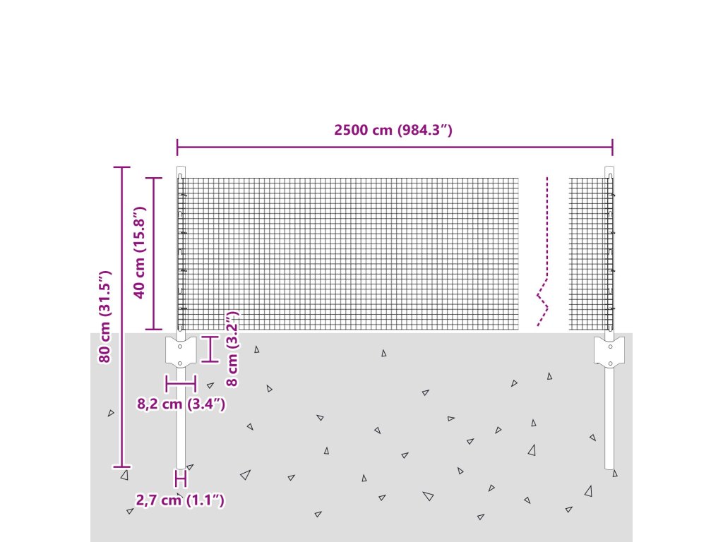 - Celkové rozměry: 2500,0 x 2,7 x 40 cm (D x Š x V)