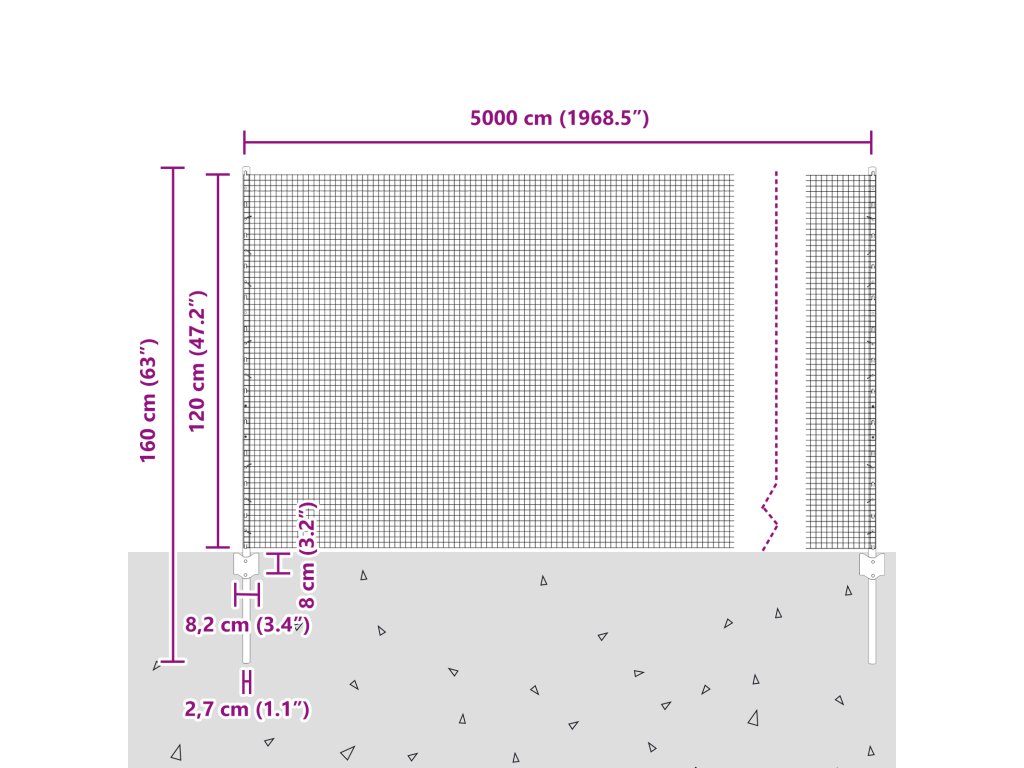 - Celkové rozměry: 5000 x 2,7 x 120 cm (D x Š x V)