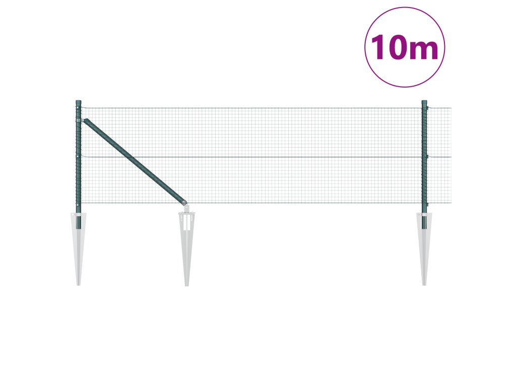 Plotový sloupek. Zelená 10 x 0,4 m (19 x 19 mm síť) Ocel a PVC