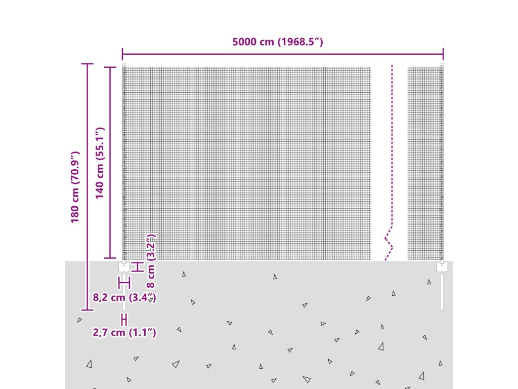 - Celkové rozměry: 5000 x 2,7 x 140 cm (D x Š x V)