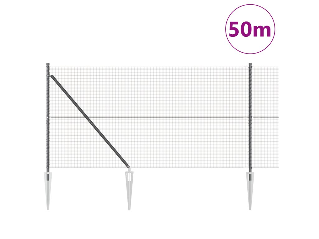 Plotový sloupek. Šedá 50 x 1,4 m (16 x 16 mm síť) Ocel a PVC