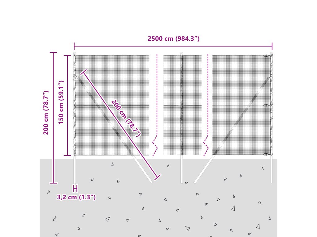 - Celkové rozměry: 2500 x 3,2 x 150 cm (D x Š x V)