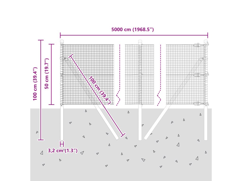 Plotový sloupek. Zelená 50 x 0,5 m (16 x 16 mm síť) Ocel a PVC