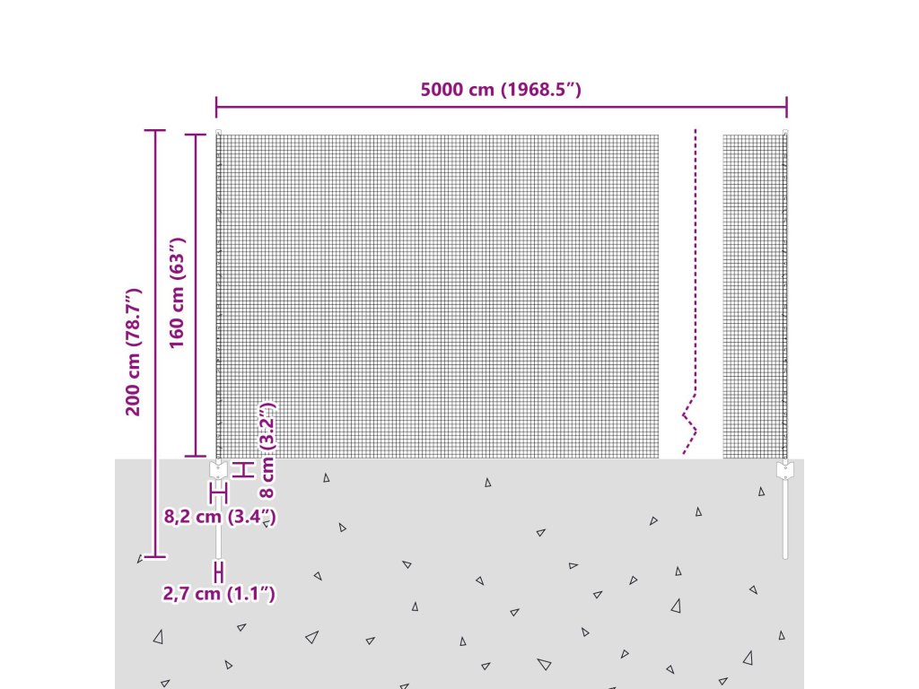 - Celkové rozměry: 5000 x 2,7 x 160 cm (D x Š x V)
