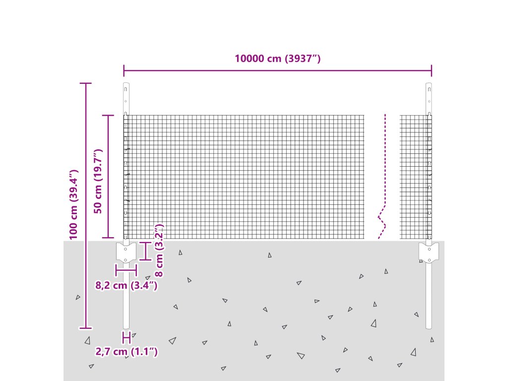 - Celkové rozměry: 10000 x 2,7 x 50 cm (D x Š x V)