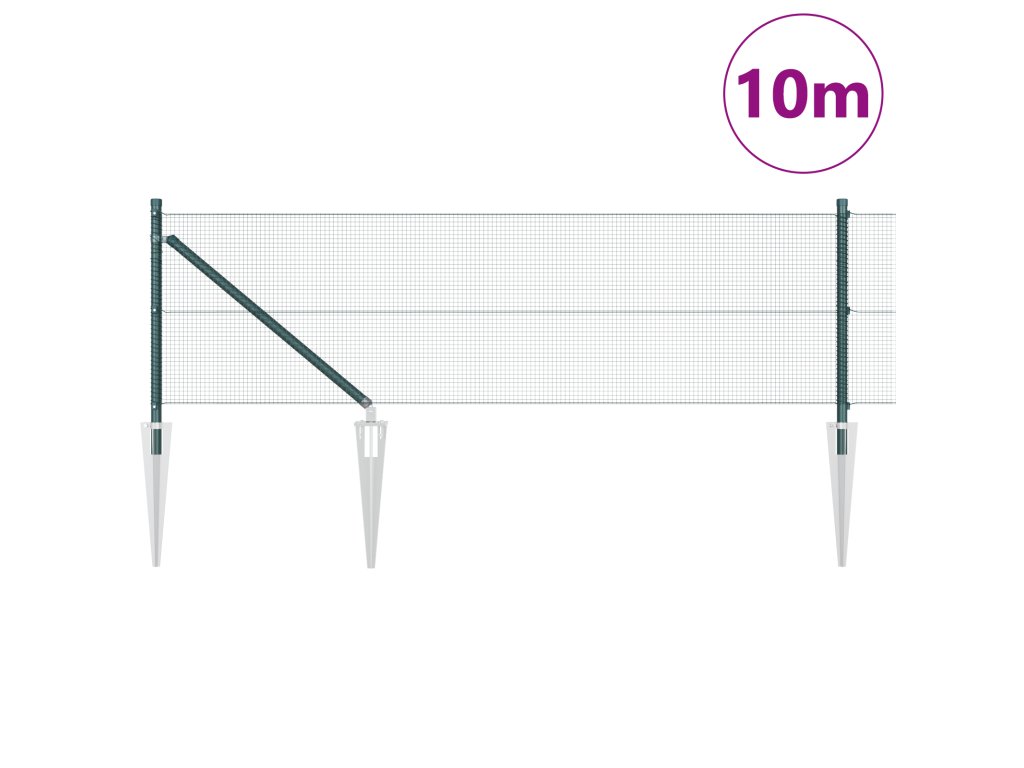 Plotový sloupek. Zelená 10 x 0,4 m (12 x 12 mm síť) Ocel a PVC