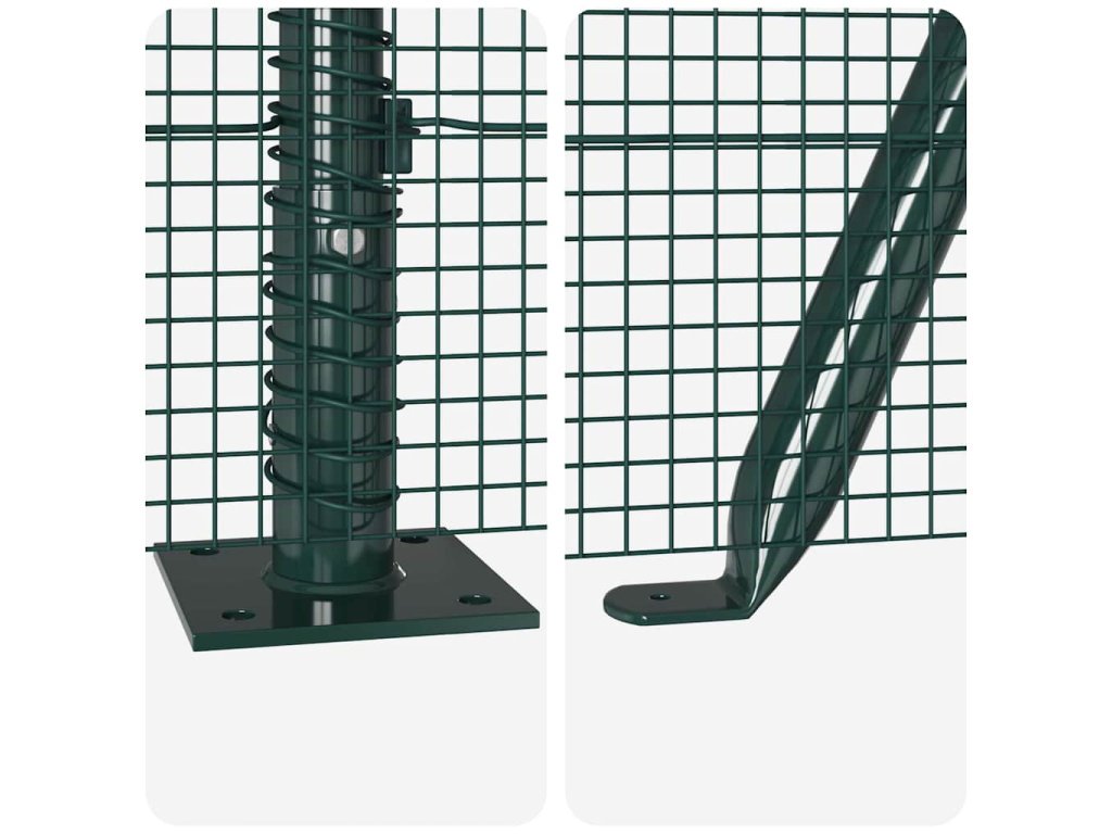Odolnost proti UV záření: Plot je vyroben z vysoce kvalitní oceli, ošetřené speciálním UV-odolným materiálem, aby odolávalo prodloužené expozici slunečnímu záření. To nejen chrání integritu a vzhled plotu, ale také zajišťuje, že časem zůstane vypadat jako nový. To je ideální pro venkovní použití, protože odolává vyblednutí a udržuje svůj živý vzhled po celý rok., Povětrnostně odolné panely: Navrženo pro všechny klima, tyto panely poskytují vynikající odolnost proti dešti, větru a sezónním vlivům. Práškovaná povrchová úprava dodává další vrstvu ochrany, což činí tento plot ideálním pro pobřežní, městské nebo venkovské prostředí, kde může být počasí nepředvídatelné. Jeho odolnost zaručuje, že vaše plotové řešení vydrží s minimální údržbou., Vlastnosti odolné proti korozi: Tento plot nejenže odolává povětrnostním vlivům, ale také odolává rzi a korozi v průběhu času. Specializovaný nátěr aplikovaný na ocel zajišťuje dlouhotrvající výkon bez rzi, což poskytuje klid na duši, že po instalaci bude plot vyžadovat minimální údržbu a udrží svou strukturální integritu po mnoho let., Jednoduchost sestavení: Ačkoli je sestavení nutné, jednoduché pokyny výrobce činí úkol zvládnutelným pro majitele domů. Jakmile je postavený, plot poskytuje nenápadnou, ale účinnou periferní bariéru, která vytváří bezpečné a přitažlivé prostředí, jež se bezproblémově integruje do zahradních a terasových prostor., Další zabezpečovací prvek: Pro ty, kdo mají přísné požadavky na zabezpečení, pokyny k sestavení doporučují ujistit se, že dno plotu se dotýká země. To zabraňuje nežádoucím mezerám a nabízí lepší udržení nejen pro domácí mazlíčky a děti, ale také dále zpevňuje váš venkovní prostor proti vniknutí.- Barva: Zelená