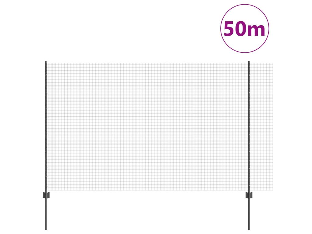 Plot s sloupkem Šedá 1,5 x 50 m Ocel a PVC