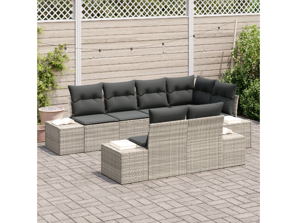 Sada zahradních pohovek s polštářem 7 pcs Světle šedá polyratan