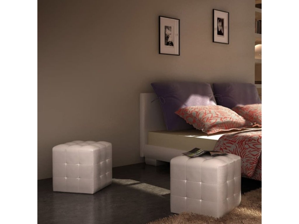 Vaše kreativita s touto stoličkou ve tvaru kostky nemá hranice. Tyto stoličky jsou vyrobené z odolné syntetické kůže, která se snadno čistí. V této zásilce obdržíte 2 taburety.