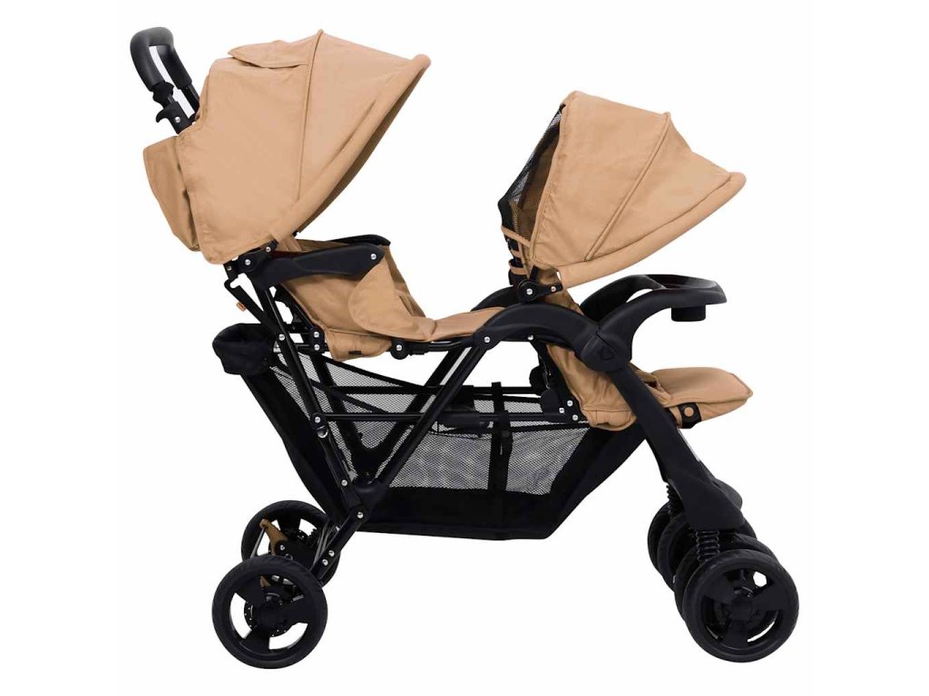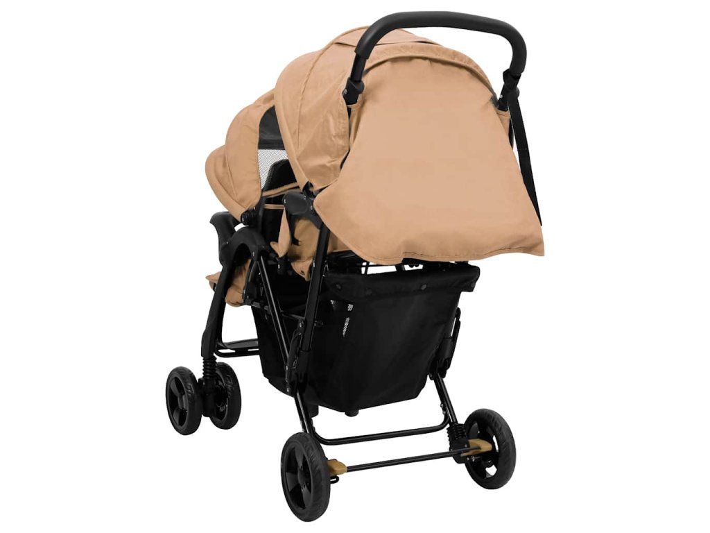Kočárek pro dvojčata je vyrobený z oceli a lnu, takže je robustní a pohodlný. Nastavitelná stříška je navržena tak, aby děti chránila před UV zářením. Ve spodní části také naleznete úložný košík na hračky, jídlo, deku atd. Kočárek pro dvojčata lze navíc snadno a kompaktně složit, takže vám při uskladnění či přepravování ušetří mnoho místa.