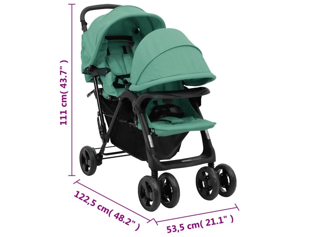 Kočárek pro dvojčata je vyrobený z oceli a lnu, takže je robustní a pohodlný. Nastavitelná stříška je navržena tak, aby děti chránila před UV zářením. Ve spodní části také naleznete úložný košík na hračky, jídlo, deku atd. Kočárek pro dvojčata lze navíc snadno a kompaktně složit, takže vám při uskladnění či přepravování ušetří mnoho místa.