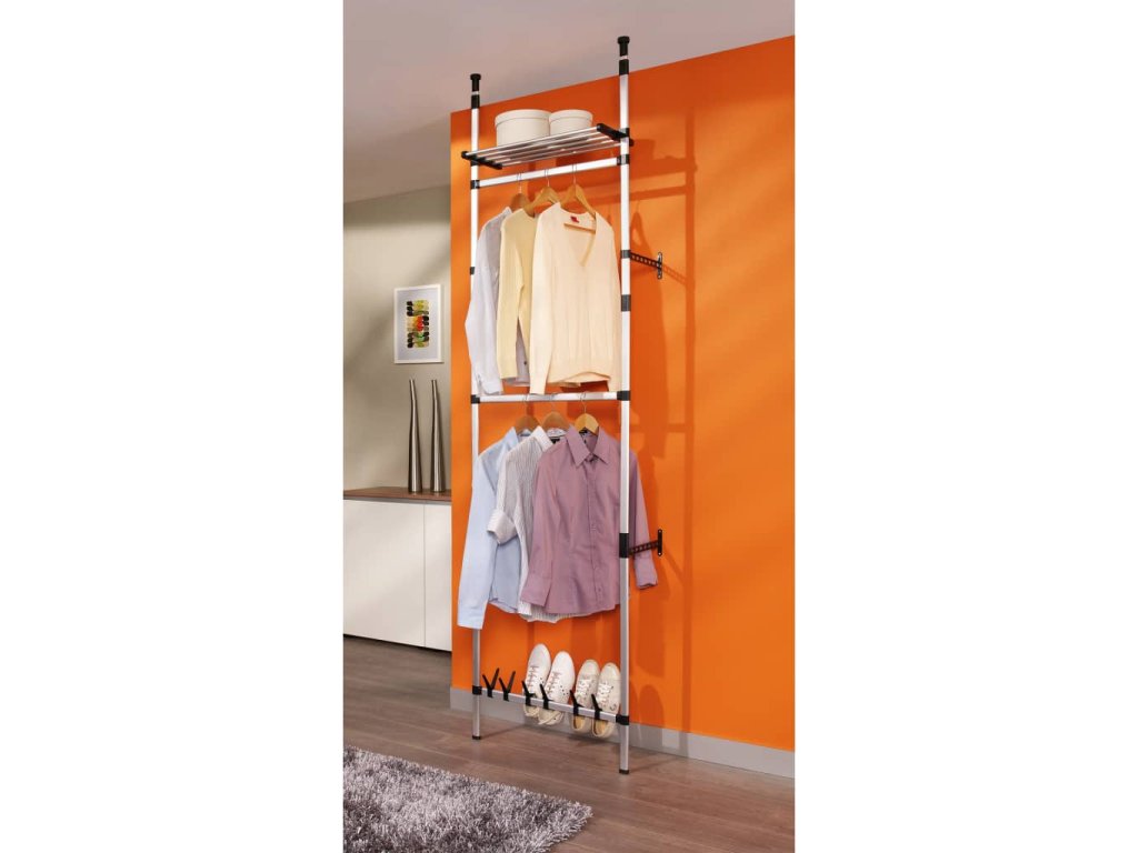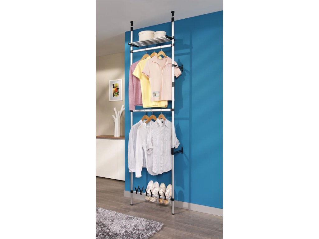 Teleskopický šatní systém je vyrobený z hliníku, takže je odolný a robustní. Tento úložný regál s teleskopickým systémem lze výškově nastavit a přizpůsobit prostoru a vašim požadavkům. Nabízí jedinečný a důmyslný způsob uspořádání šatníku.