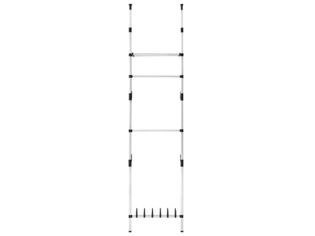 Teleskopický šatní úložný systém s tyčemi a policí hliník