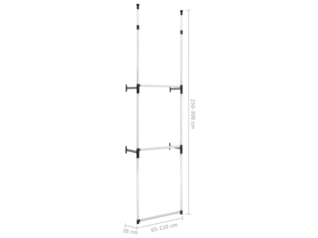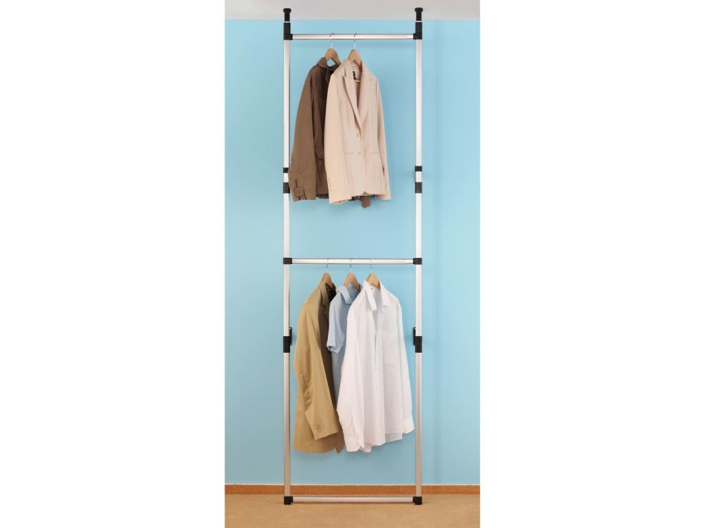 Teleskopický šatní systém je vyrobený z hliníku, takže je odolný a robustní. Tento úložný regál s teleskopickým systémem lze nastavit a přizpůsobit jeho výšku a šířku danému prostoru a vašim požadavkům. Nabízí jedinečný a důmyslný způsob uspořádání šatníku.