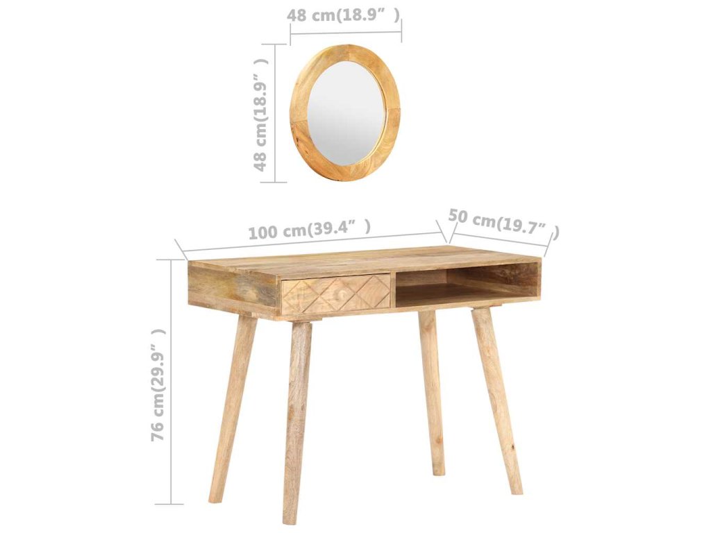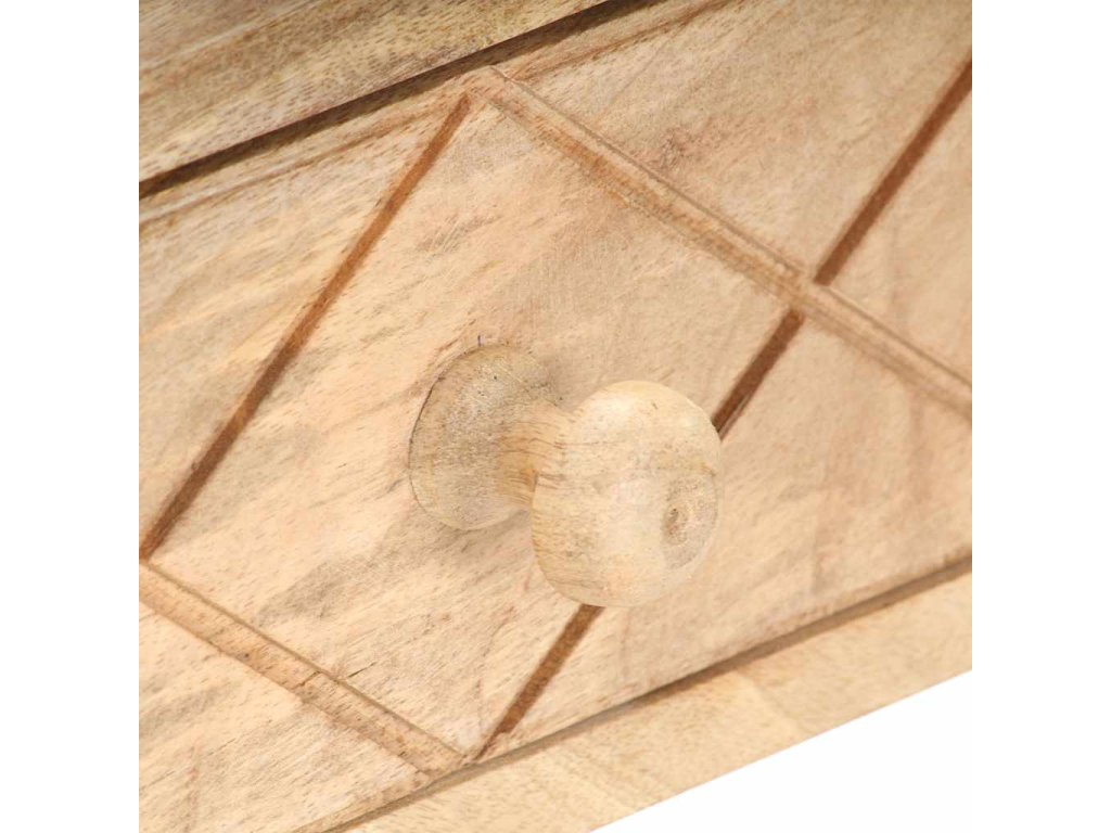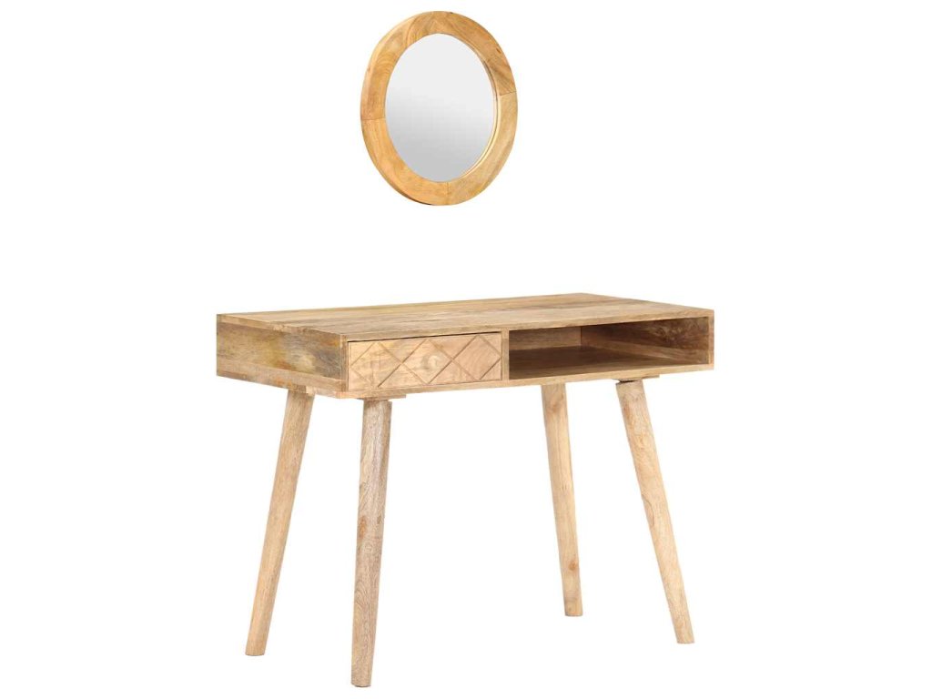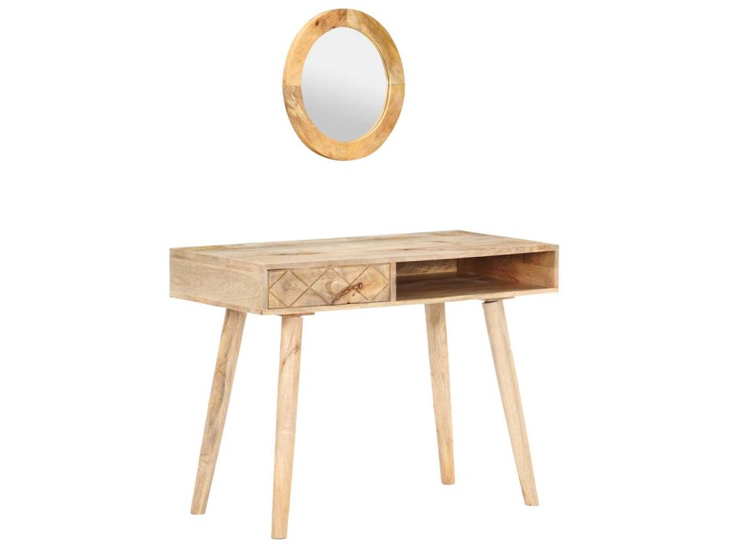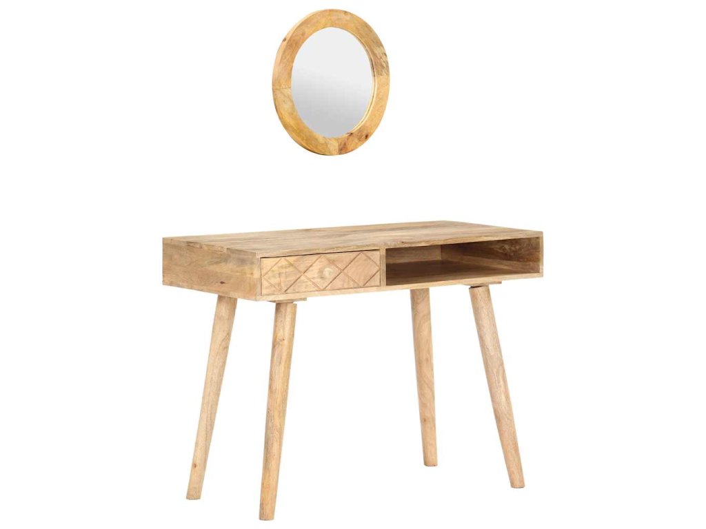 Toaletní stolek je vyrobený z masivního mangovníkového dřeva, tropického tvrdého dřeva, které dokáže nést velkou váhu. Rovněž výborně vzdoruje opotřebení, a proto je TV skříňka stabilní a má dlouhou životnost. Řemeslné zpracování a krásná kresba dřeva dává každému kusu nábytku jeho jedinečný a od všech ostatních mírně odlišný charakter. Tato kosmetická skříňka má také zásuvku a otevřenou přihrádku, které poskytují dostatek úložného prostoru pro organizaci důležitých věcí na dosah ruky.