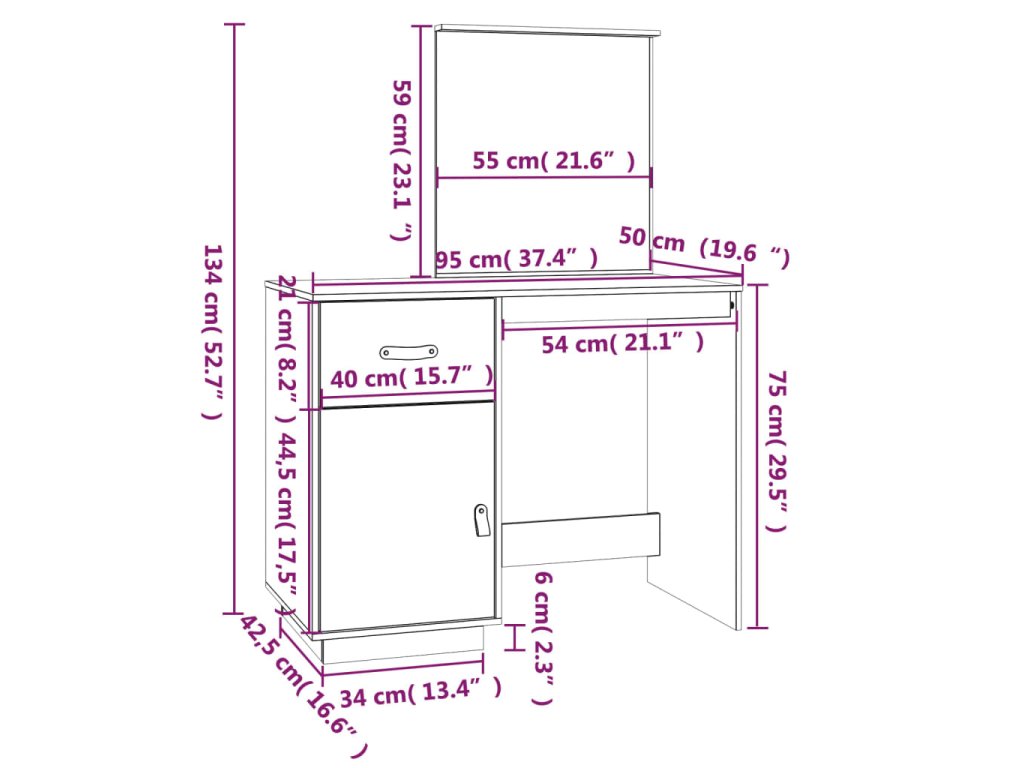 - Praktická dvířka: Udržujte své věci bez prachu tím, že je schováte za dvířka tohoto kosmetického stolku.