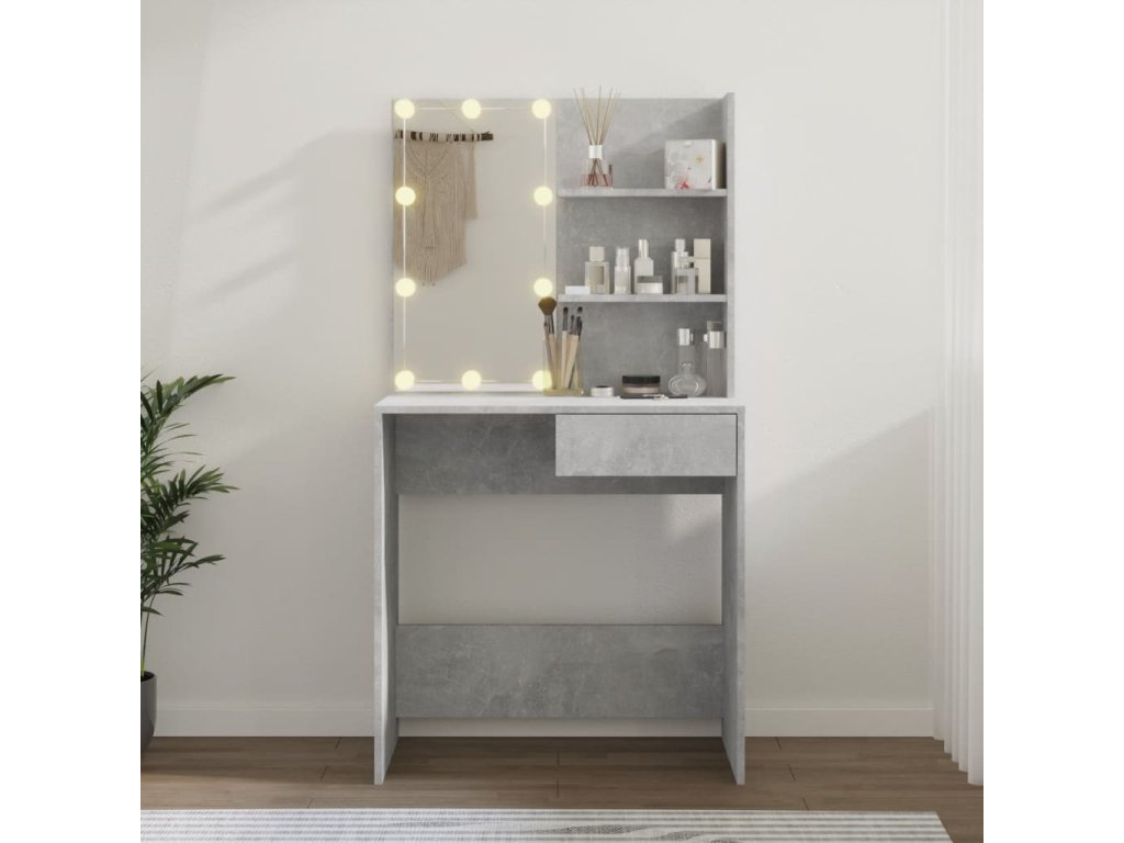 Toaletní stolek s LED betonově šedý 74,5 x 40 x 141 cm