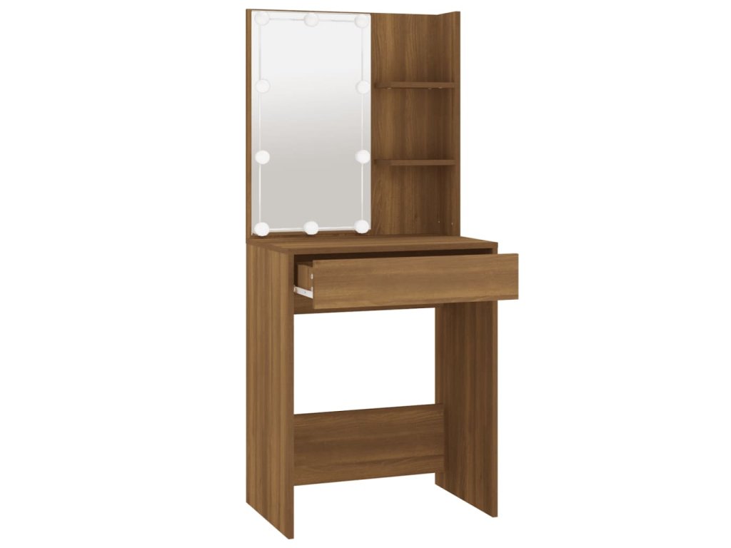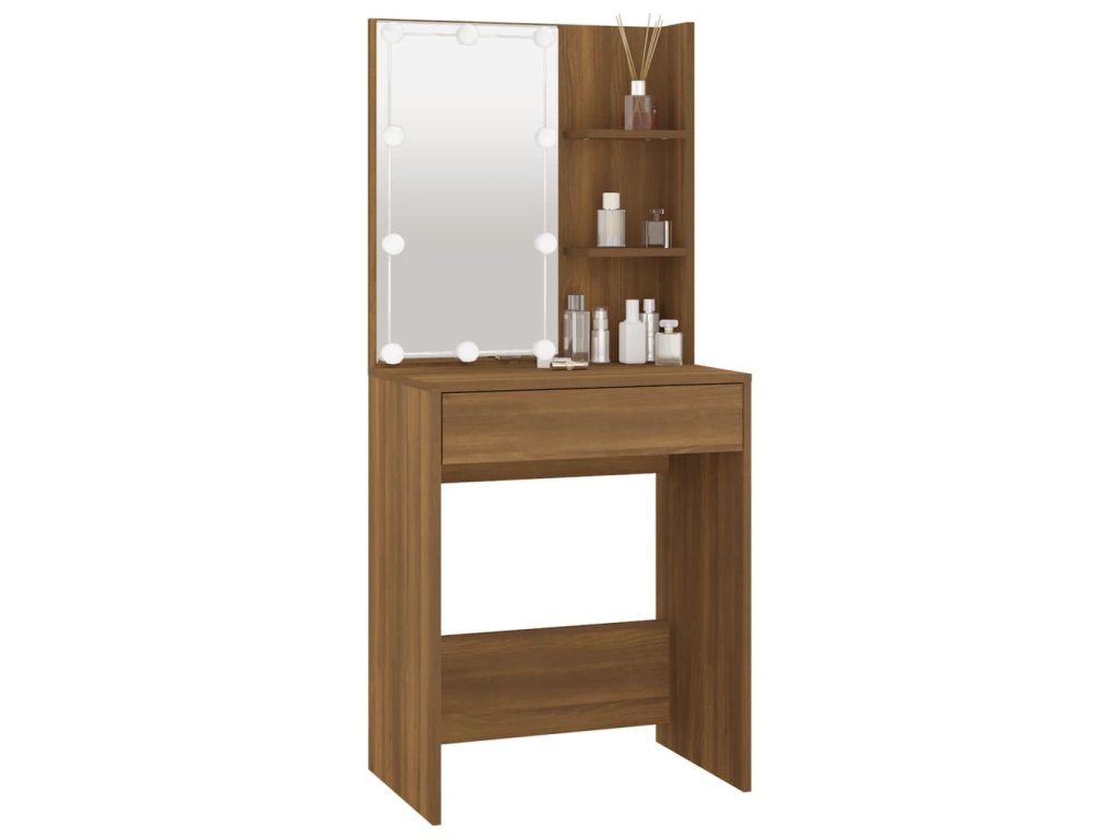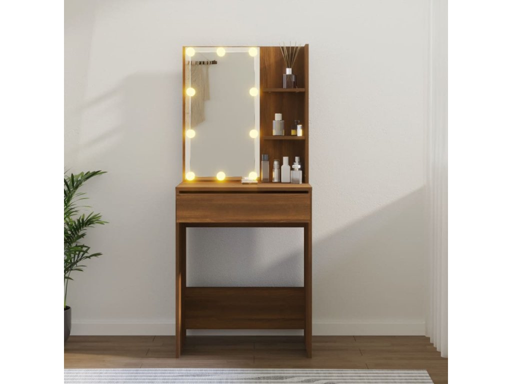 Toaletní stolek s LED hnědý dub 60 x 40 x 140 cm