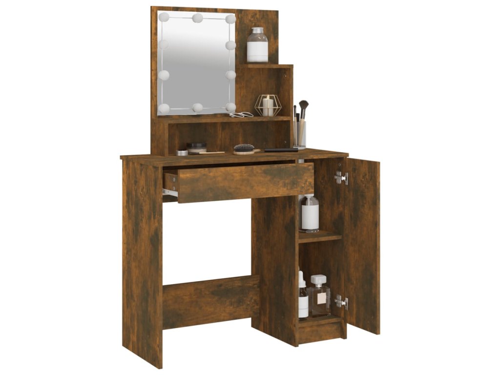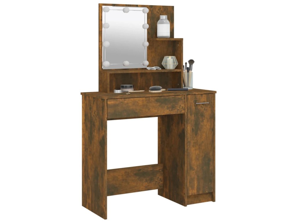Toaletní stolek s LED kouřový dub 86,5 x 35 x 136 cm