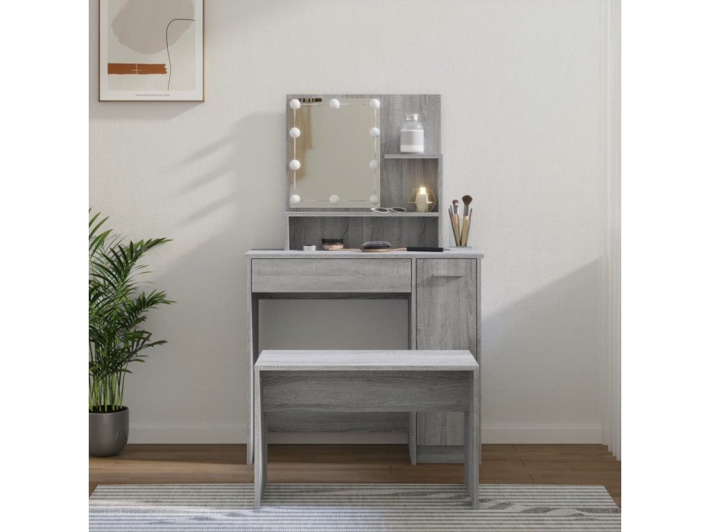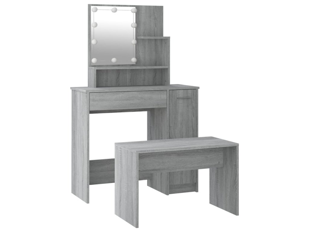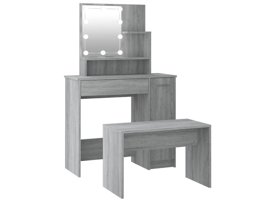 Toaletní stolek sada s LED šedý sonoma kompozitní dřevo