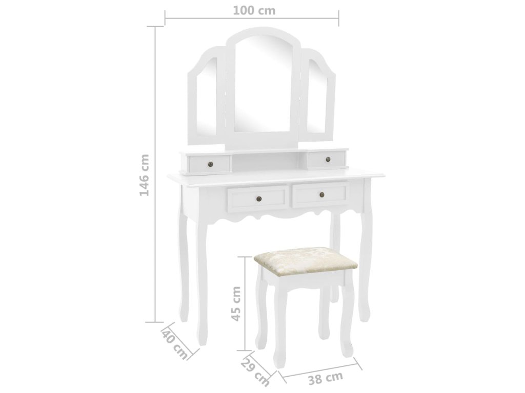 Toaletní stolek se stoličkou bílý 100 x 40 x 146 cm pavlovnia