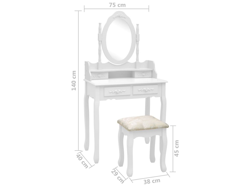 Toaletní stolek se stoličkou bílý 75 x 69 x 140 cm pavlovnia