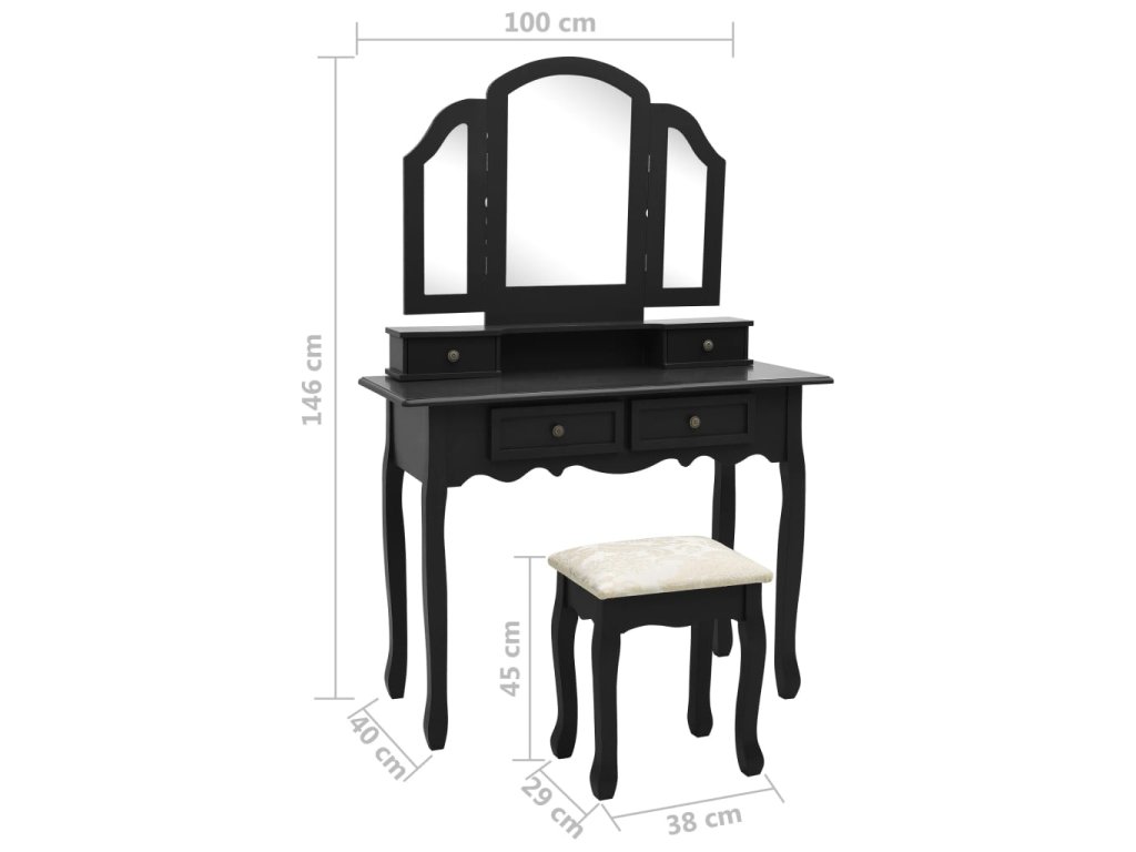 Toaletní stolek se stoličkou černý 100 x 40 x 146 cm pavlovnia