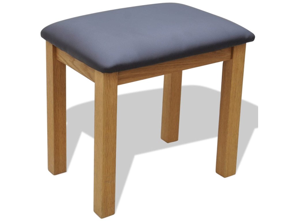 Tento robustní a odolný toaletní set bude zároveň praktickým i dekorativním doplňkem do vaší ložnice. Zadní strana stolku je vyrobena ze silné překližky a na bytelné stoličce, čalouněné umělou kůží, se pohodlně sedí.
