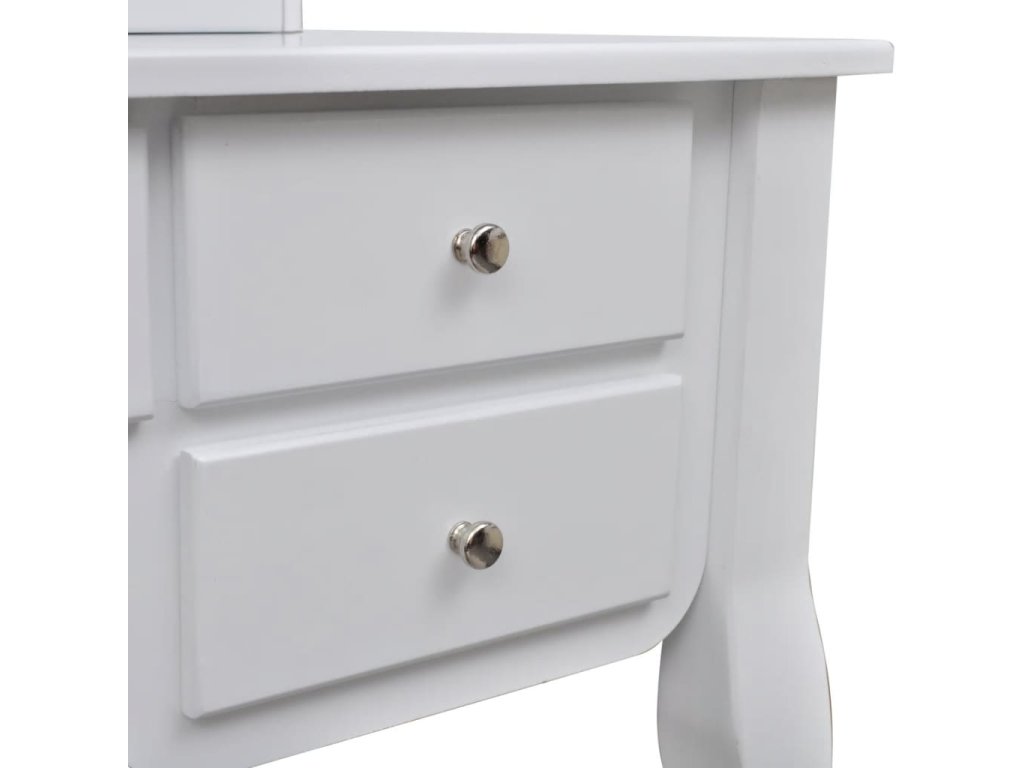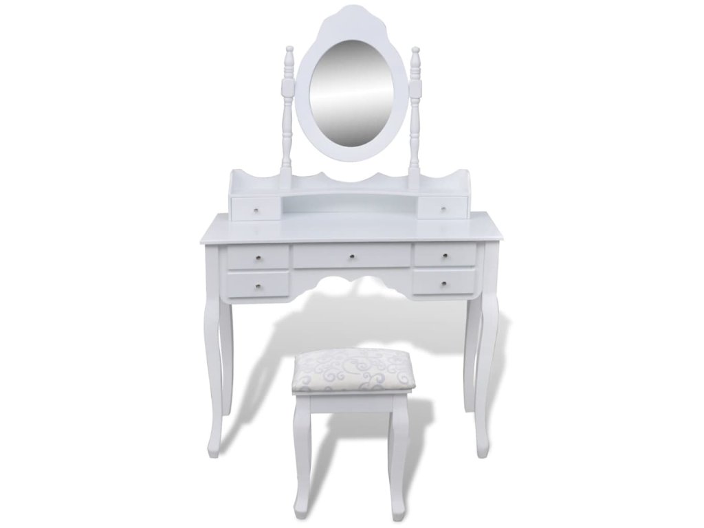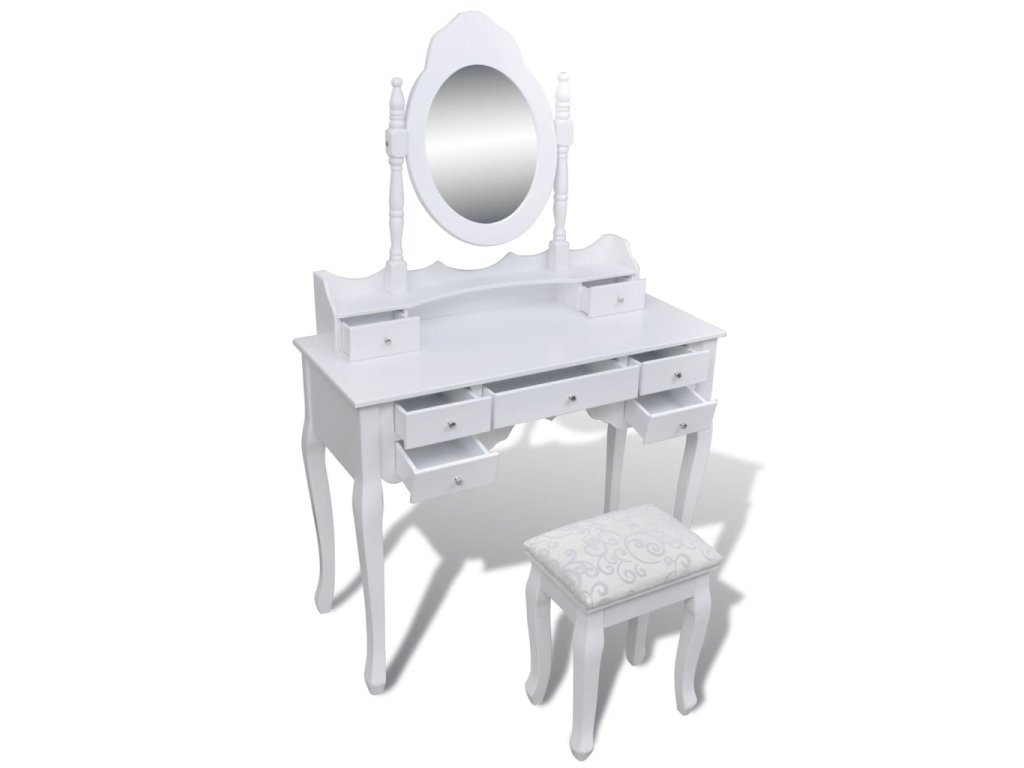 Toaletní stolek se zrcadlem, stoličkou a 7 šuplíky bílý