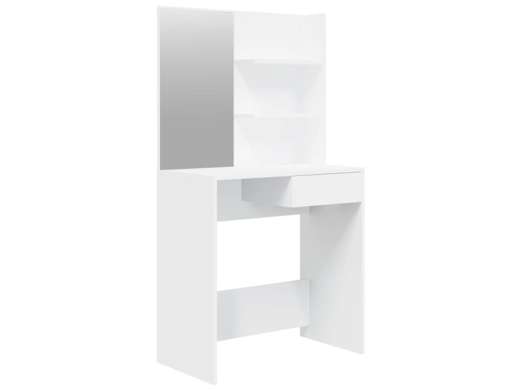 - Dostatek úložného prostoru: Stolní deska, police ve dvou patrech na stole a jedna zásuvka pod stolem poskytují dostatek prostoru pro snadný přístup k vašemu make-upu, šperkům a každodenním nezbytnostem.