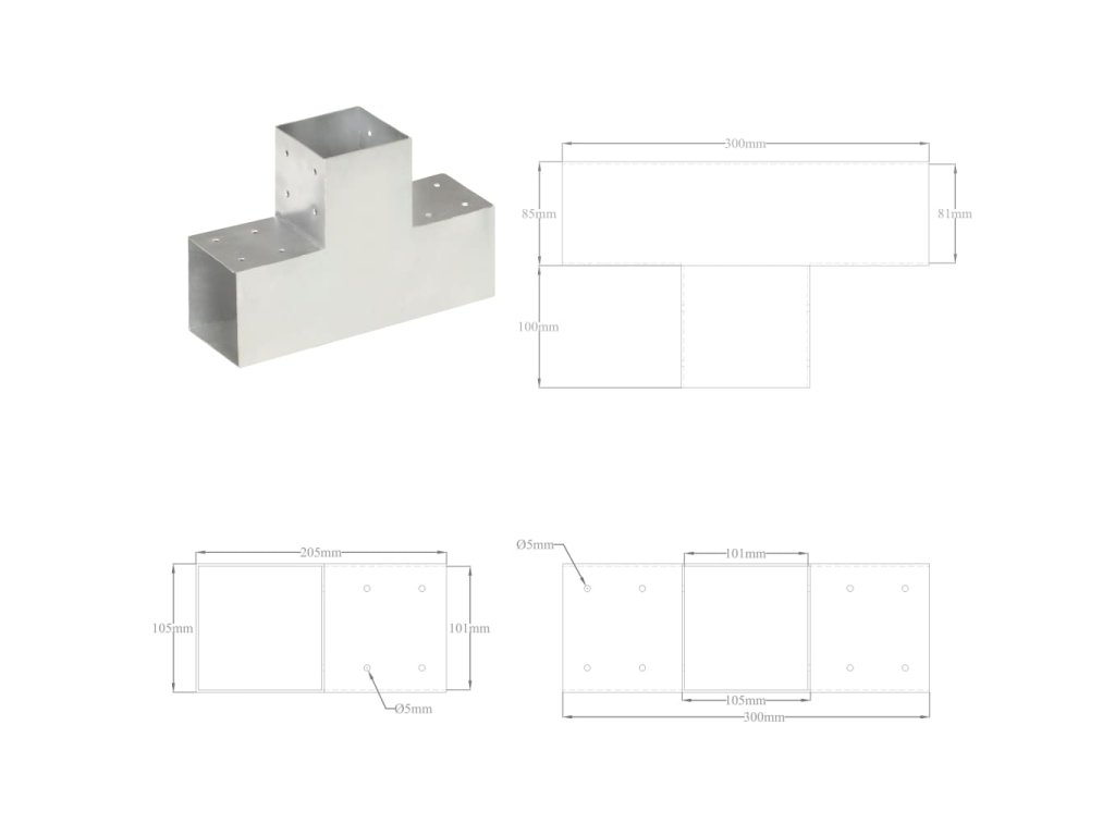 Trámová spojka ve tvaru T pozinkovaný kov 101 x 101 mm
