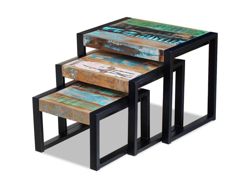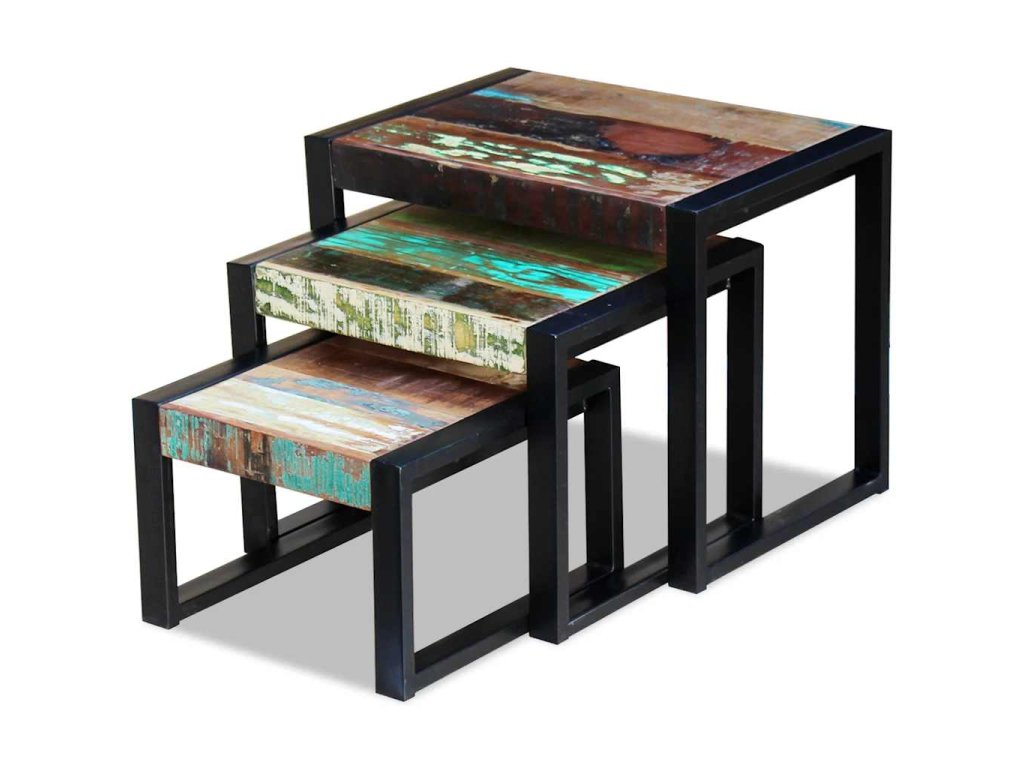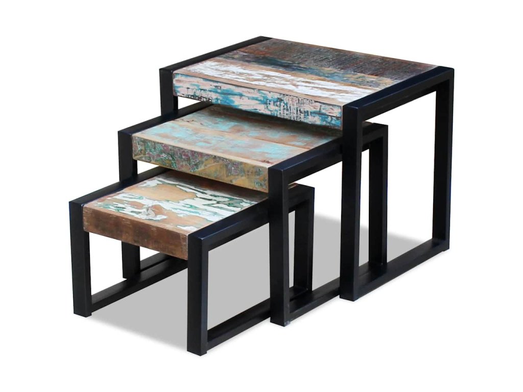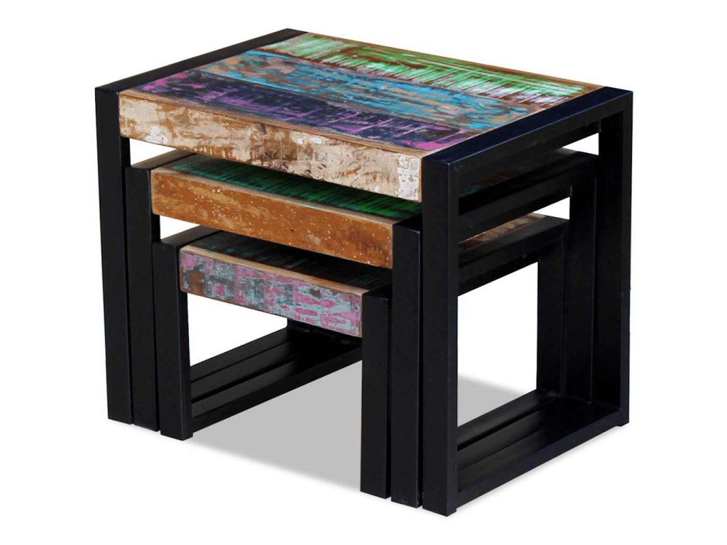 Tři stohovatelné stolky masivní recyklované dřevo