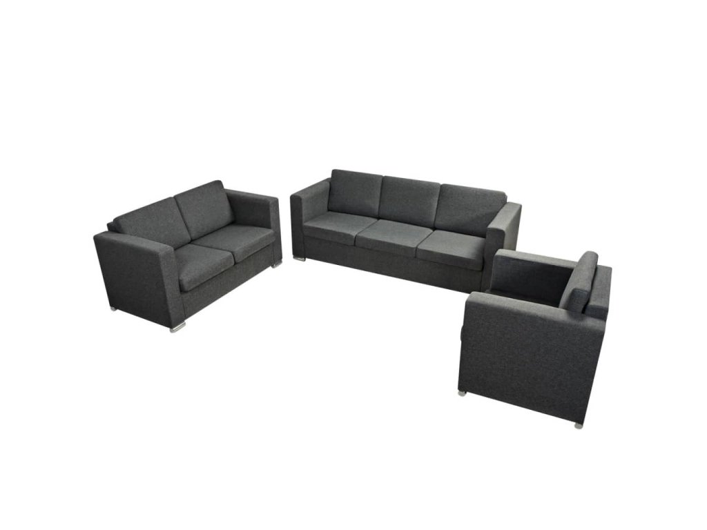 Třídílná sada pohovek s textilním čalouněním tmavě šedá