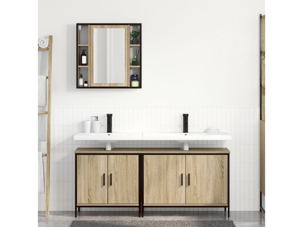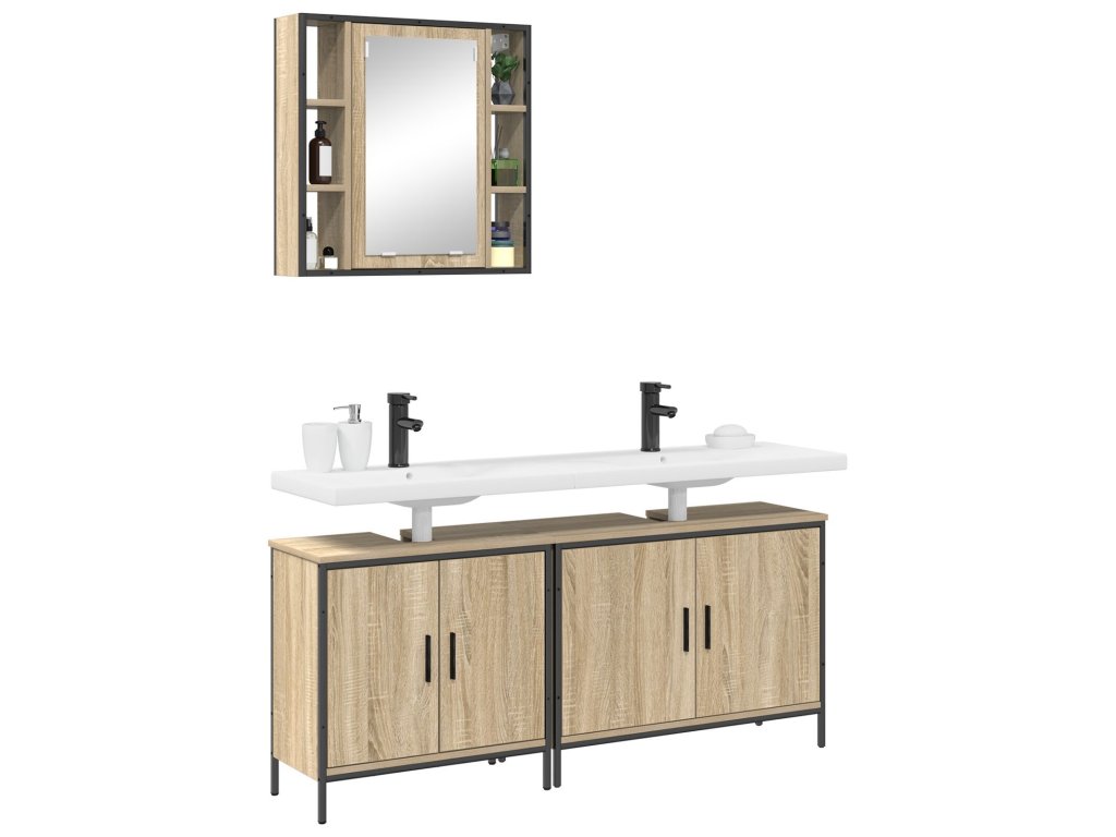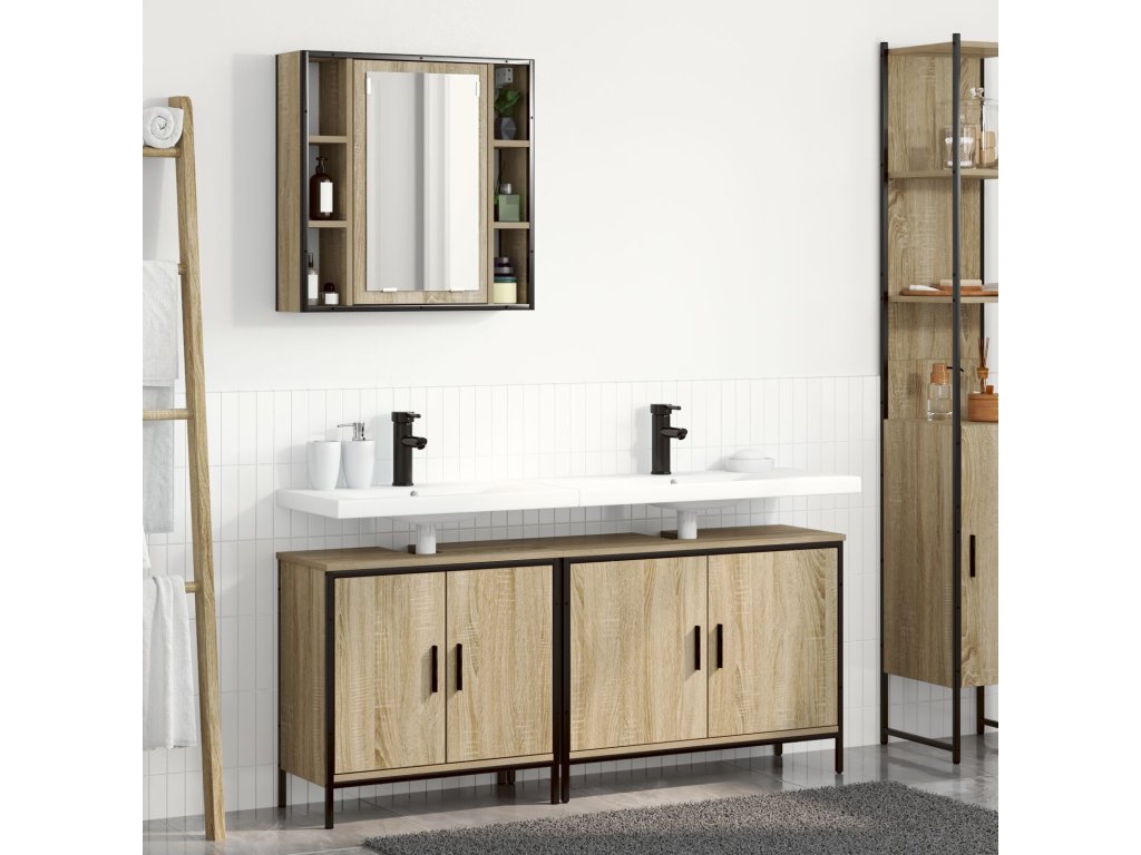 Tato moderní koupelnová souprava spojuje chytrý styl s praktičností, ideální pro dnešní koupelny. Její elegantní linie ladí s jakýmkoli dekorem a dodávají mu decentní šmrnc. Skvělá volba pro domácí kutily nebo designéry, kteří chtějí kvalitu, je kompozitní dřevo odolné a dodává teplou, stylovou atmosféru. Představte si, jak tahle stylová souprava obohacuje atmosféru vaší nově zrenovované koupelny a udržuje všechno v pořádku a čisté. Díky spoustě úložného prostoru a elegantnímu vzhledu se tahle nábytková sada trefí do vkusu jak po vzhledové, tak praktické stránce.