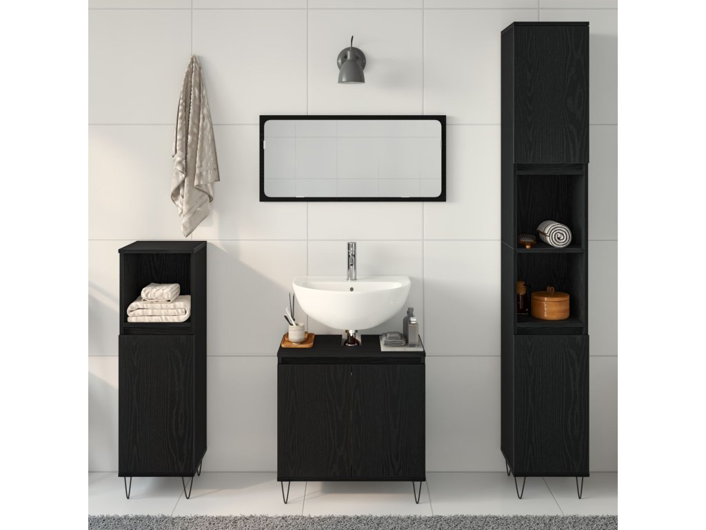 Nábytek do koupelny se dveřmi 3 pcs Černý dub 30 x 30 x 190 cm