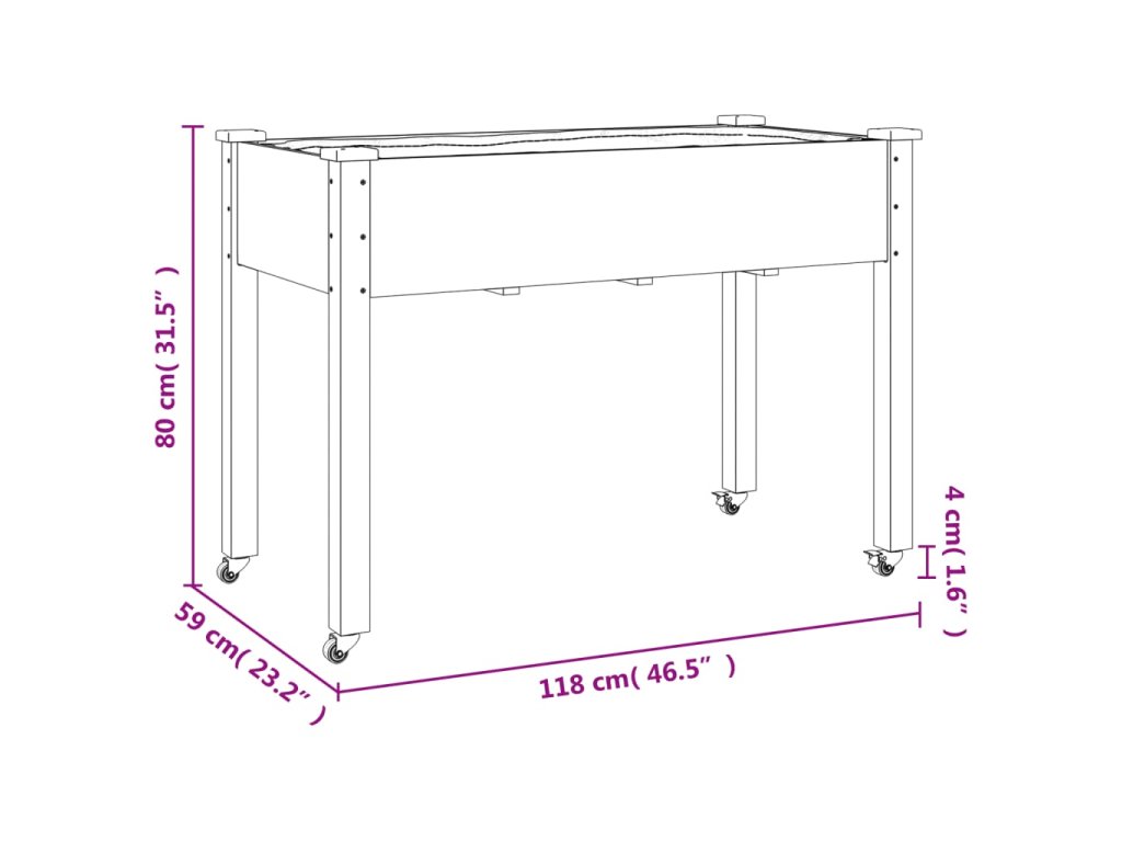 - Rozměry truhlíku: 118 x 59 x 76 cm (D x Š x V)