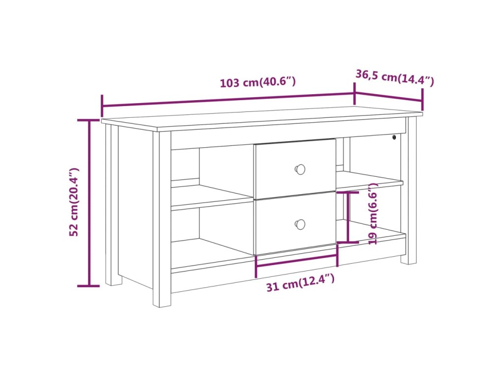 TV skříňka 103 x 36,5 x 52 cm masivní borové dřevo