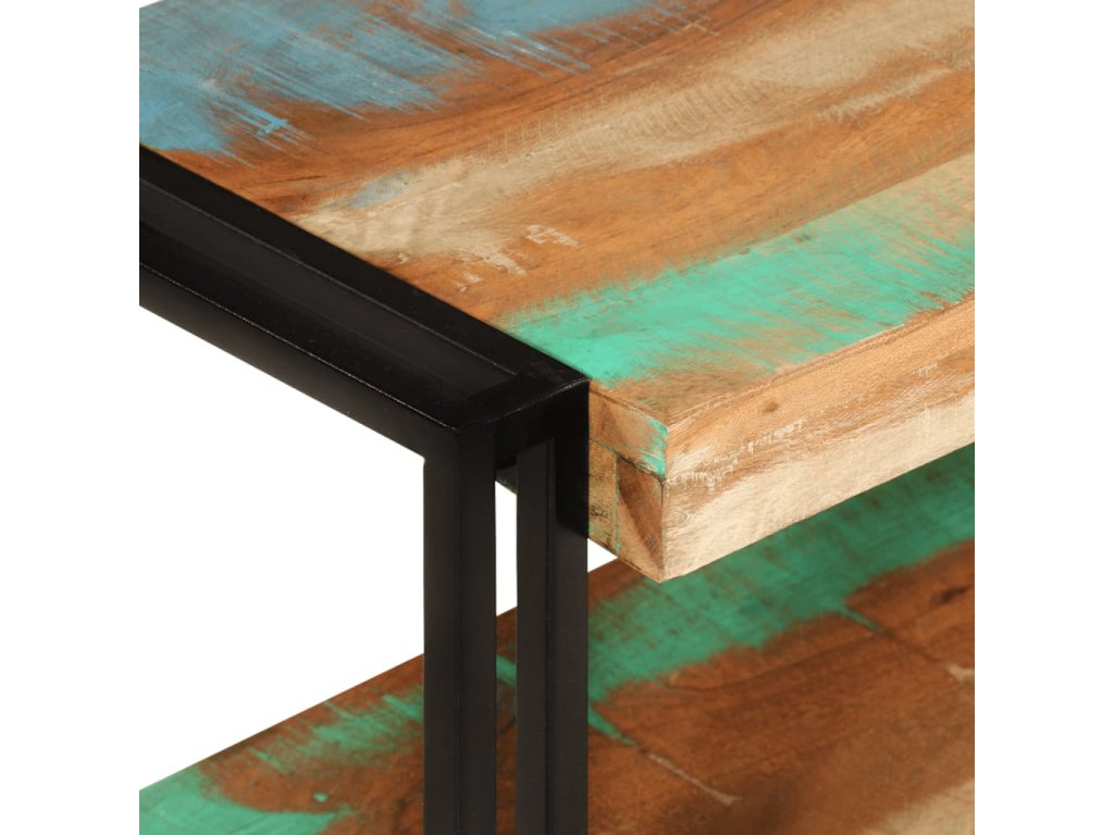 - Masivní recyklované dřevo: Masivní recyklované dřevo se skládá z opakovaně použitých dřevin, jako je teak, mangovník, borovice a buk. Toto dřevo pochází ze starých staveb, jako jsou továrny, kůlny a lodě. Jelikož je každý kus ručně vyrobený, odstíny se mohou u každého z nich lišit.