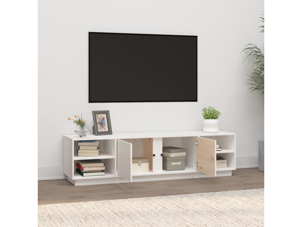 TV skříňka bílá 156 x 40 x 40 cm masivní borové dřevo