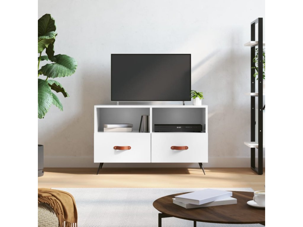 TV skříňka bílá s vysokým leskem 80x36x50 cm kompozitní dřevo