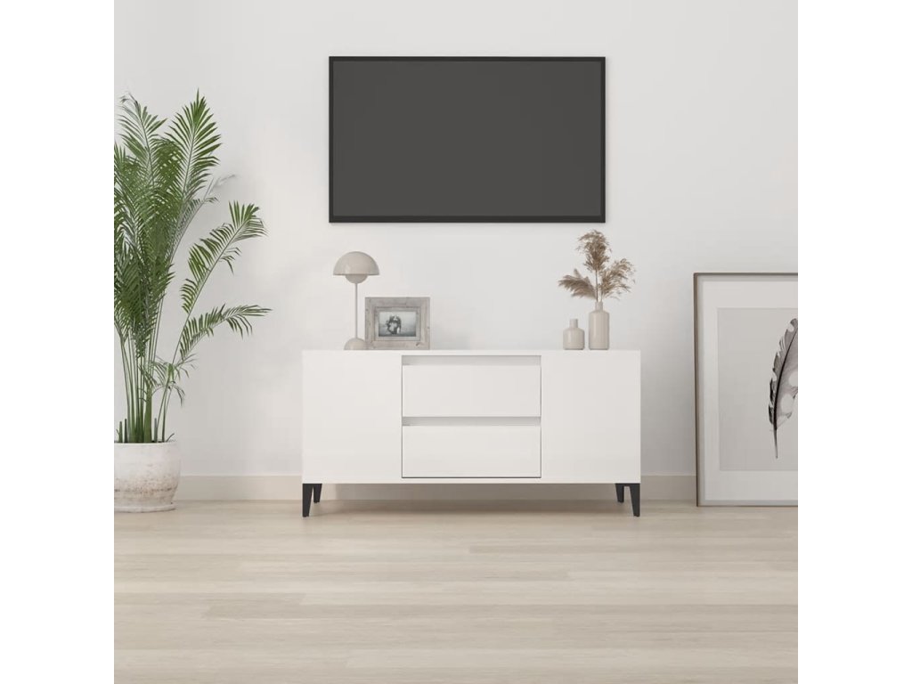 TV skříňka bílá vysoký lesk 102 x 44,5 x 50 cm kompozitní dřevo