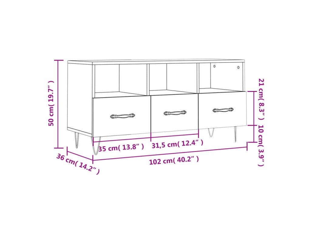 - Rozměry: 102 x 36 x 50 cm (Š x H x V)