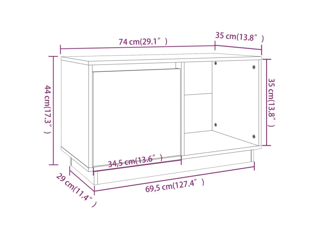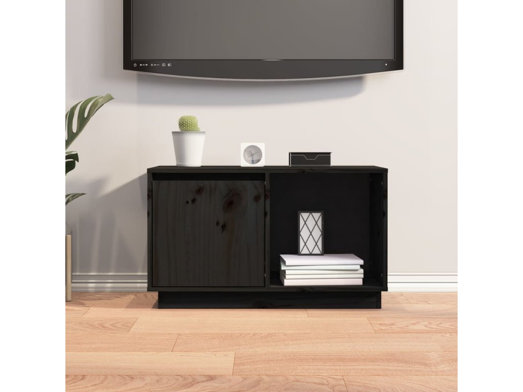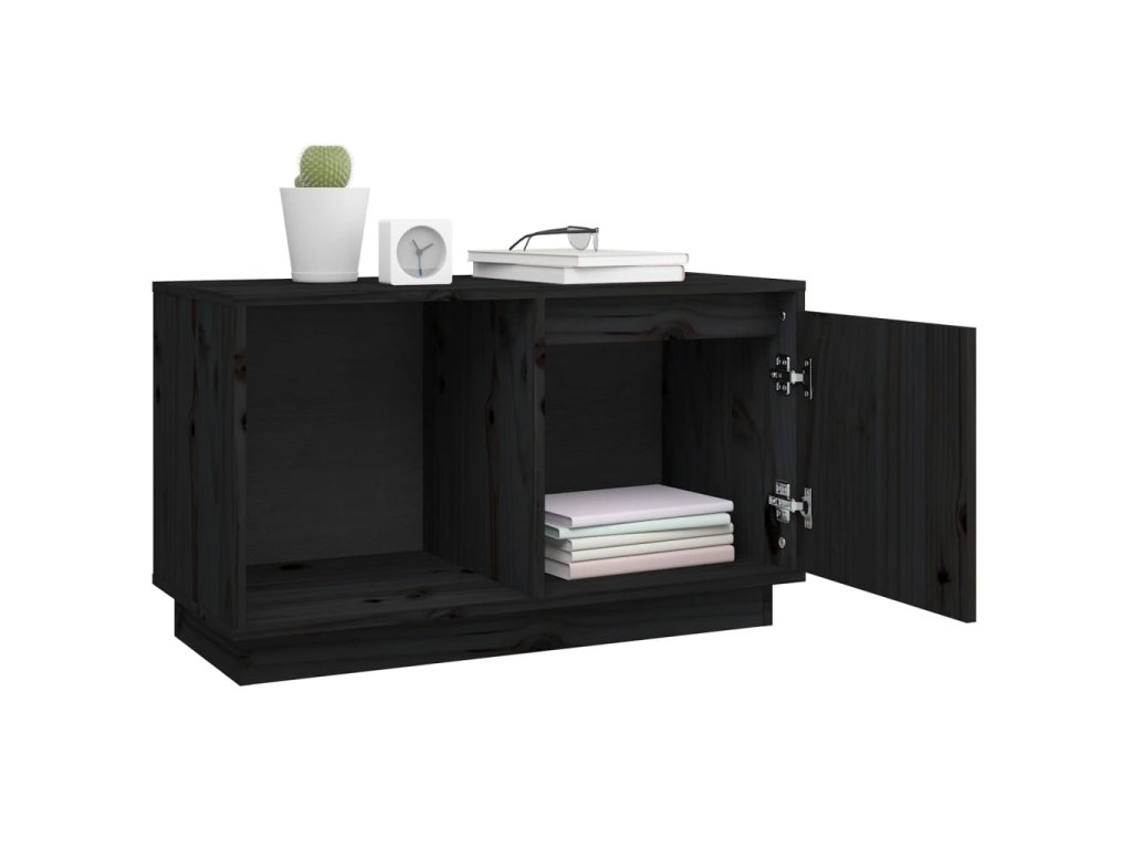 TV skříňka černá 74 x 35 x 44 cm masivní borové dřevo