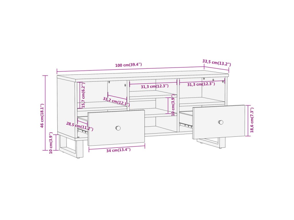 TV skříňka hnědá a černá 100 x 33,5 x 46 cm masivní mangovník