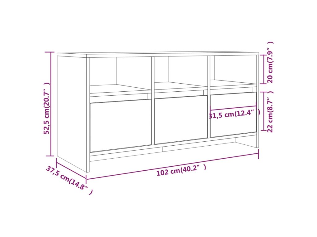TV skříňka kouřový dub 102 x 37,5 x 52,5 cm kompozitní dřevo
