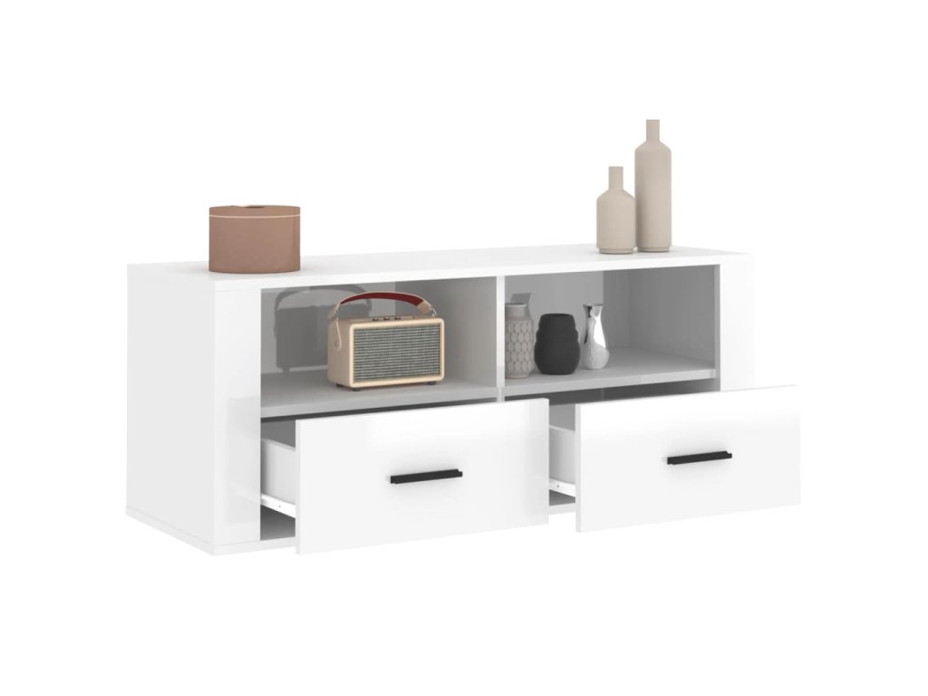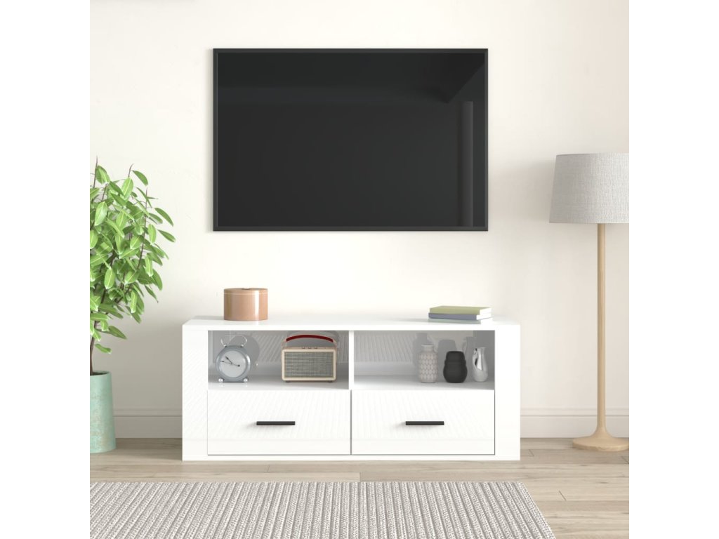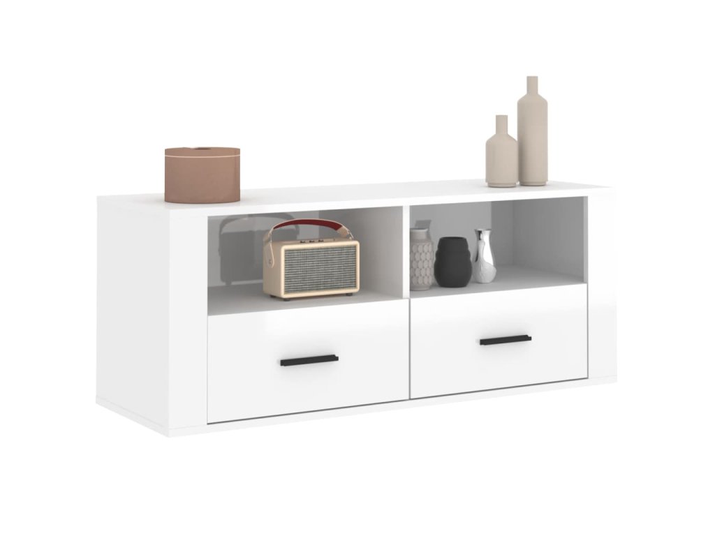 TV skříňka lesklá bílá 100x35x40 cm kompozitní dřevo