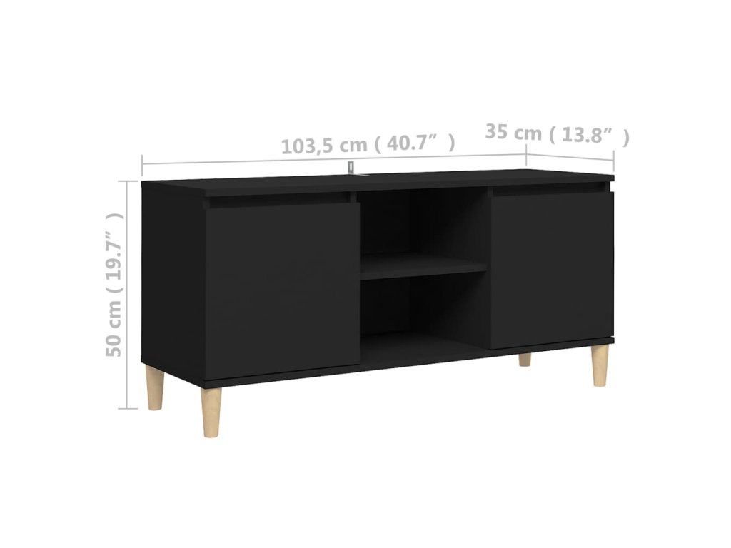 TV skříňka s nohami z masivního dřeva černá 103,5 x 35 x 50 cm