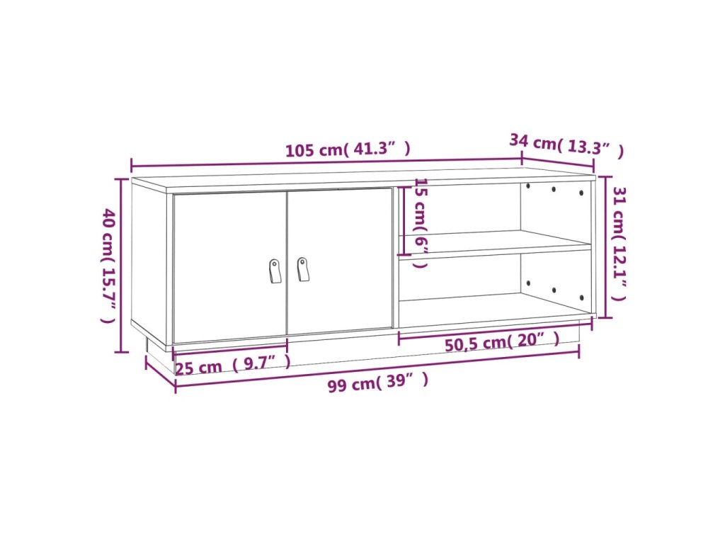 TV skříňka šedá 105 x 34 x 40 cm masivní borové dřevo